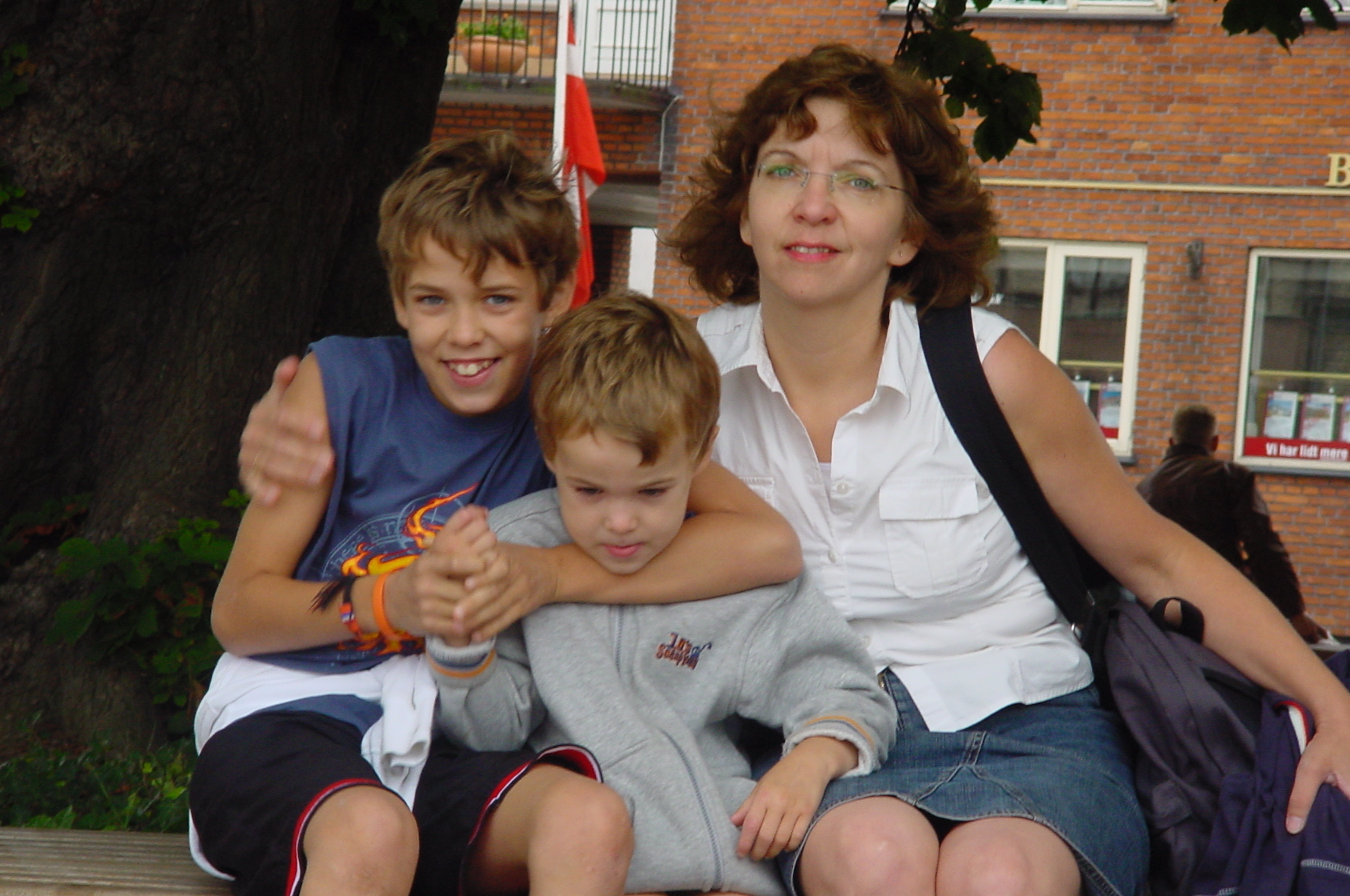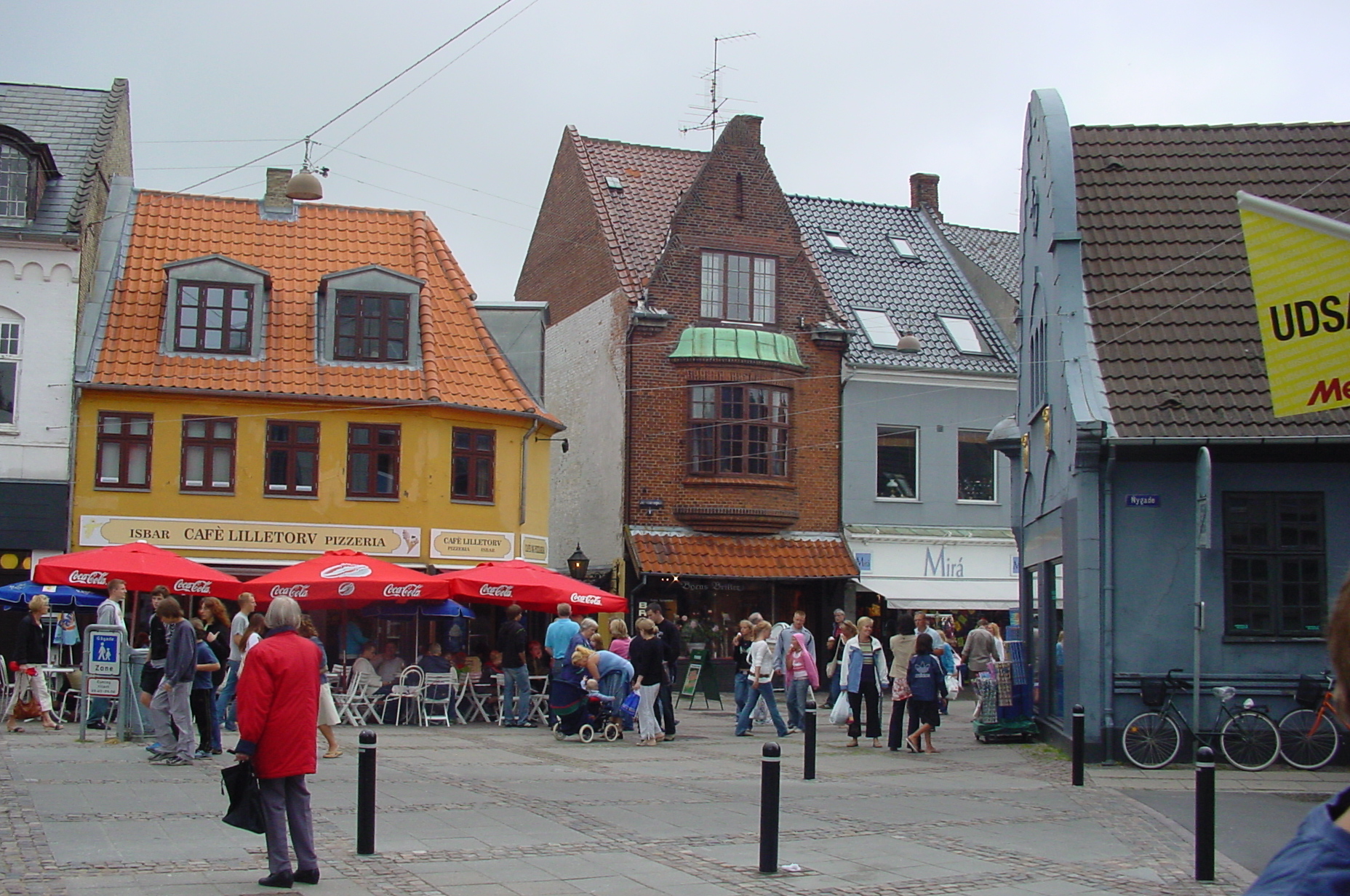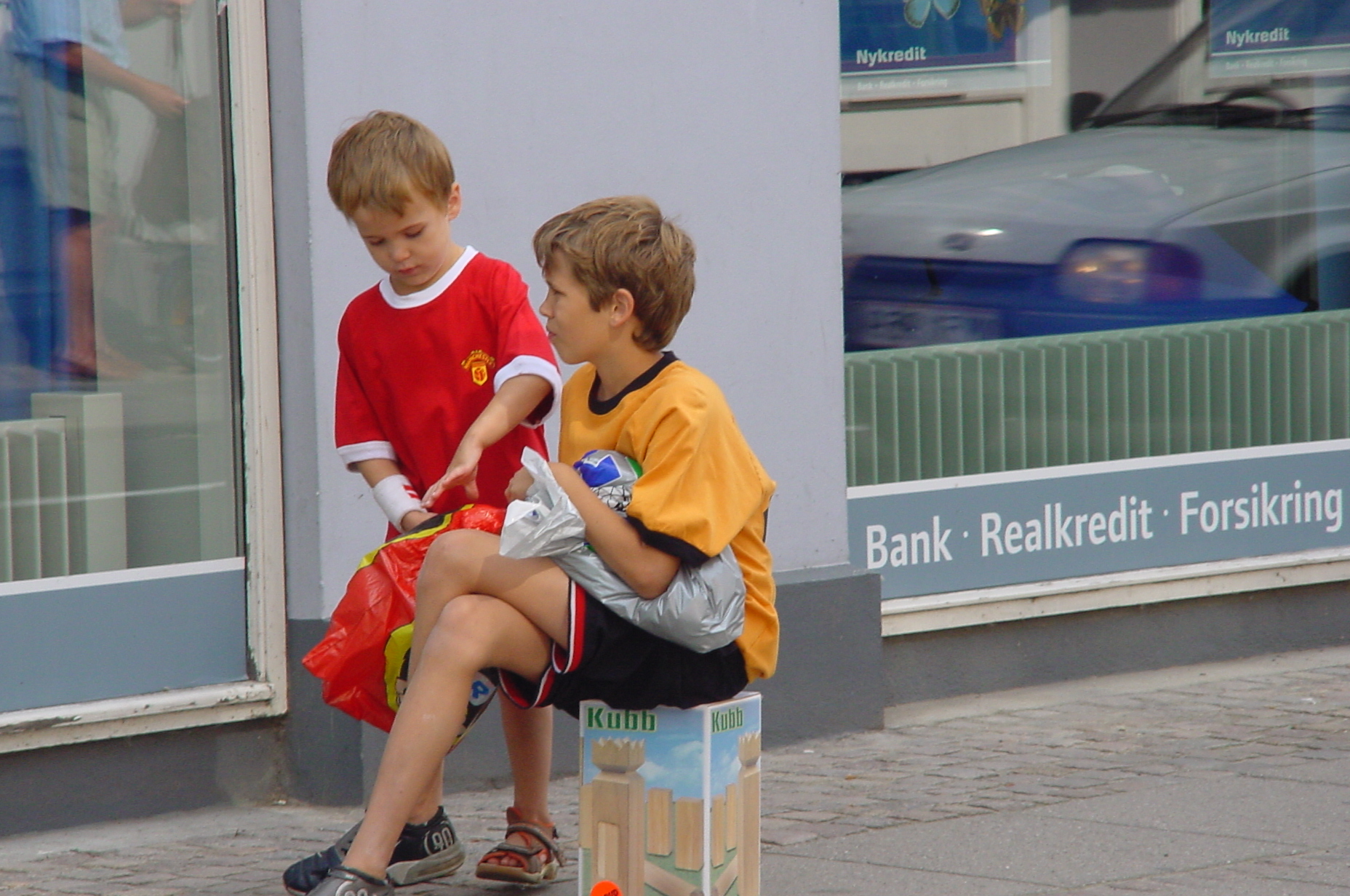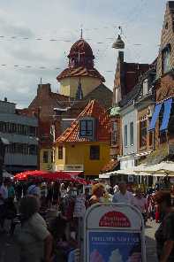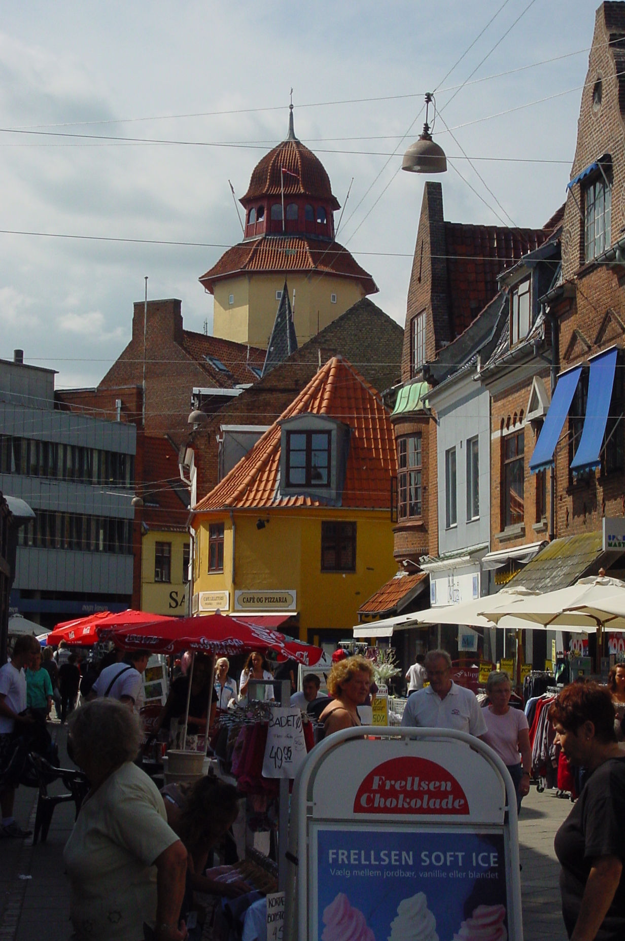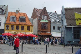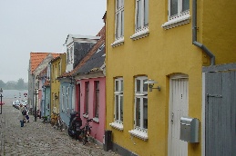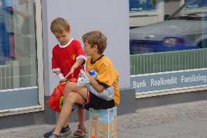 Op maandag gelijk even naar het dichtstbijzijnde plaatsje gereden het 15 kilometer verderop gelegen Nykøbing. Een typisch Deens(?) plaatsje. Monic vond er allemaal niet zoveel aan, Frans was wel gecharmeerd van het idyllische plaatsje. De kinderen waren verrukt, want hier waren immers winkels en straatverkopers. Blijkbaar is er in de vakantietijd van alles te doen in dit gedeelte van Denemarken, want ook in Nykøbing doet mee. Helaas begon het even te regenen, maar dat maakte zoweinig indruk op de kinderen dat Stan het na twee dagen alweer vergeten was. Even buiten het plaatsje vonden we de lokale Aldi die we gelijk tot onze lijfwinkel hebben benoemd. Want het is waar wat iedereen vooraf had gezegd: Denemarken is inderdaad duurder dan Nederland.